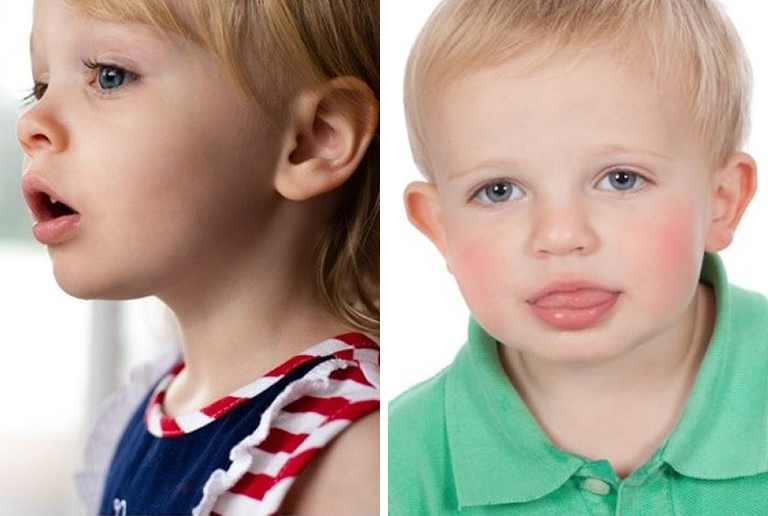 - Si traga empujando con la lengua los dientes o mordiendo el labio inferior, en lugar de empujar el paladar.